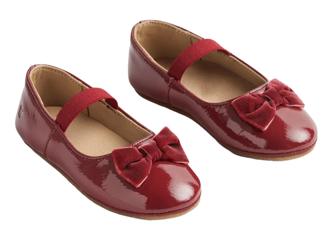 The finishing touch to any festive outfit. Crafted for comfort and play, these cherry-red ballerinas add a sparkle of joy to every step.