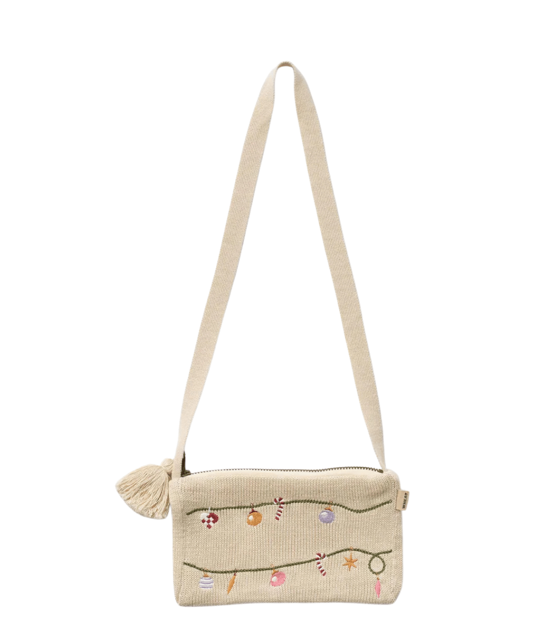 Small, sweet, and oh-so-special. This knitted clutch features delicate embroidery — perfect for carrying tiny treasures during the holiday festivities.