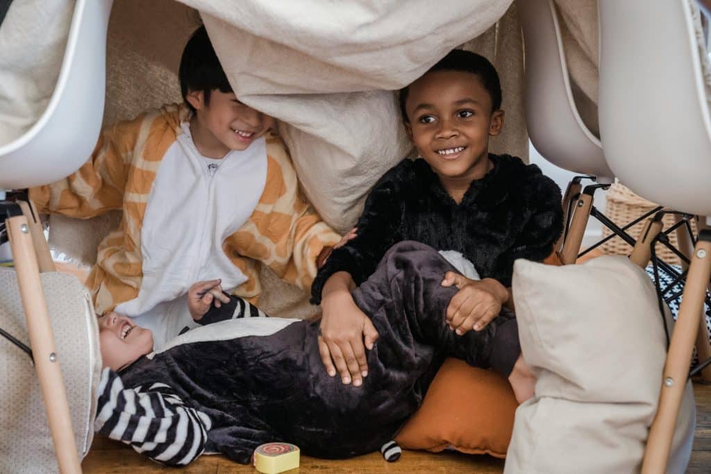 Creating a fort gives kids a creative outlet while you supervise from a cozy spot nearby.