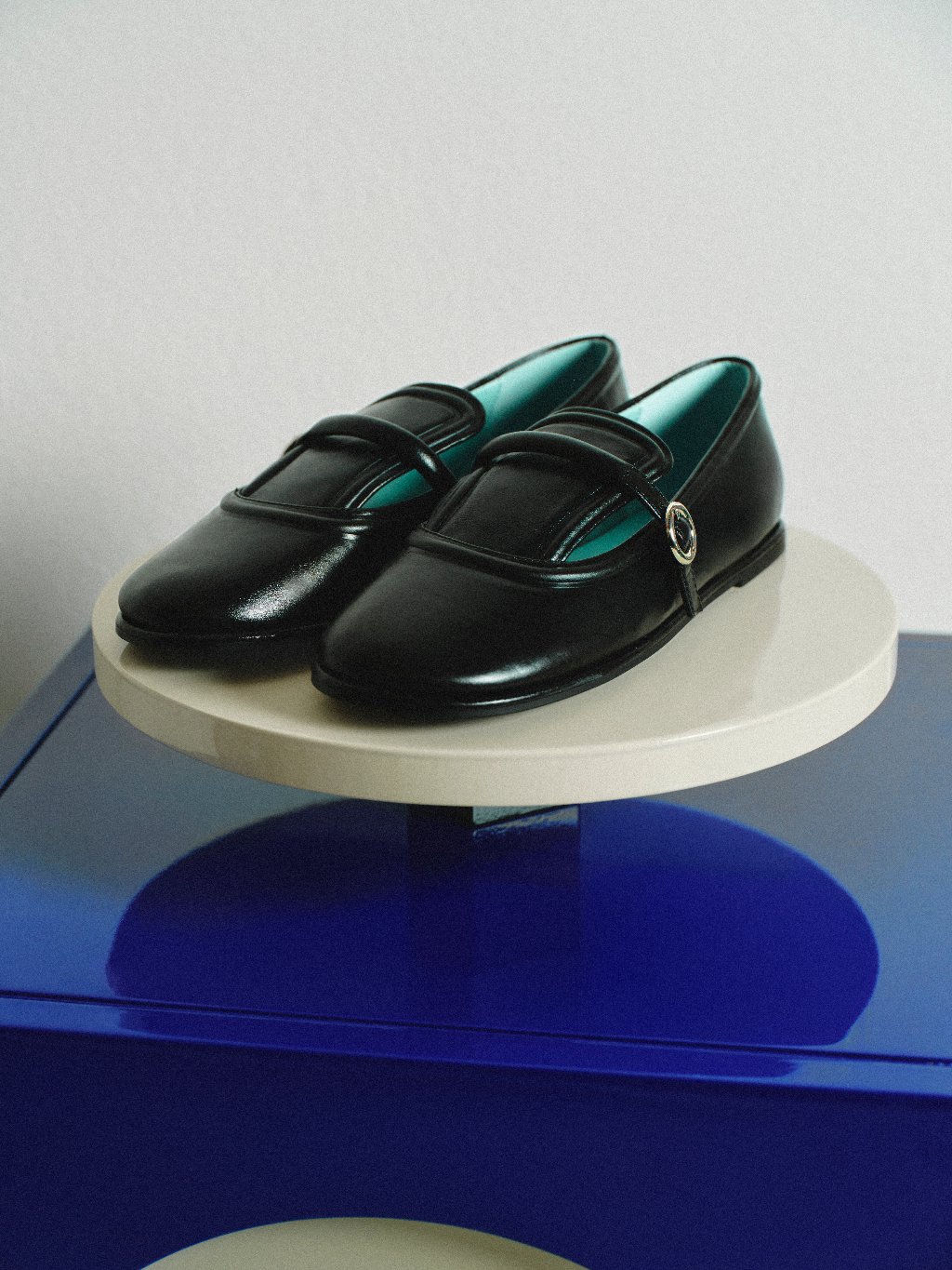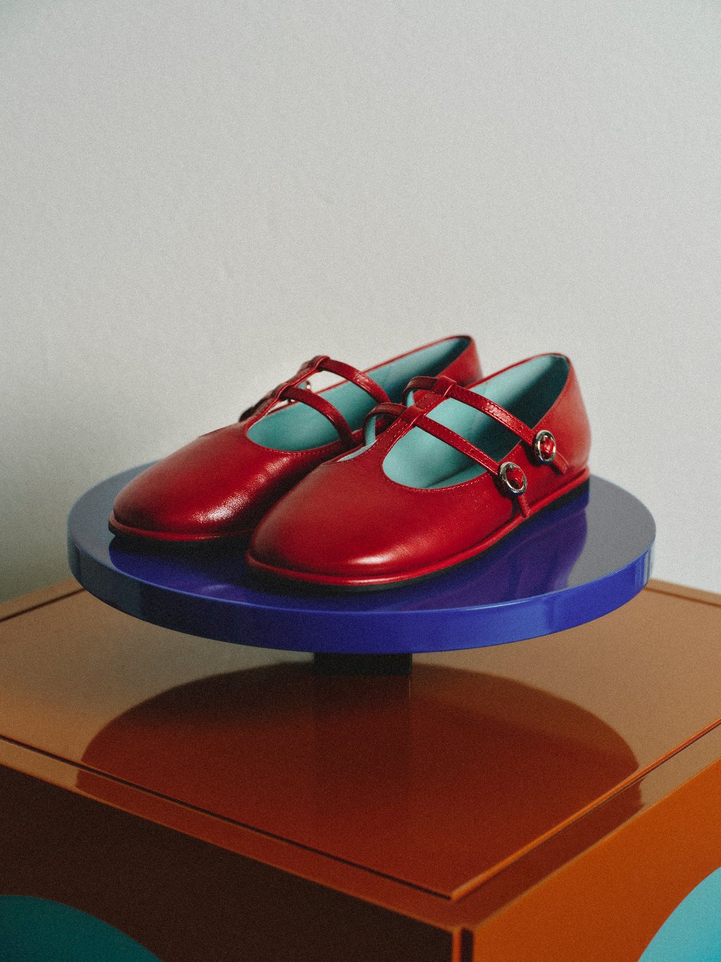 Mary Jane shoes in bold red, gold, and navy